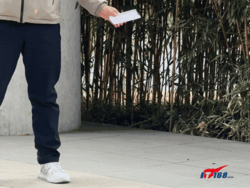 接下来提升测试强度。第二轮:室外硬质石板路面模拟跌落。可以看到,机身依然完好,功能完全OK。